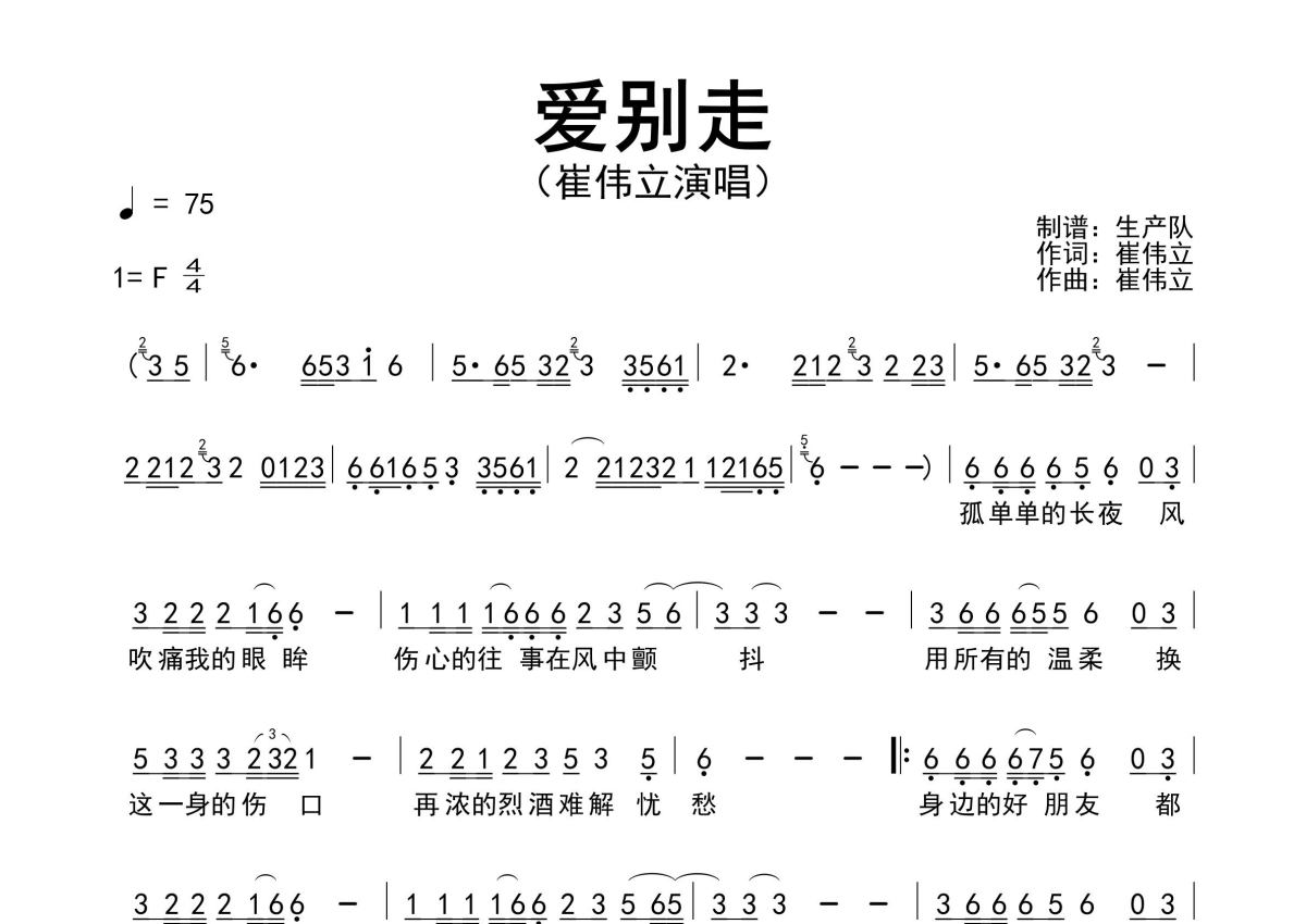 • 爱别走简谱 - 崔伟立 - 原版简谱第1张