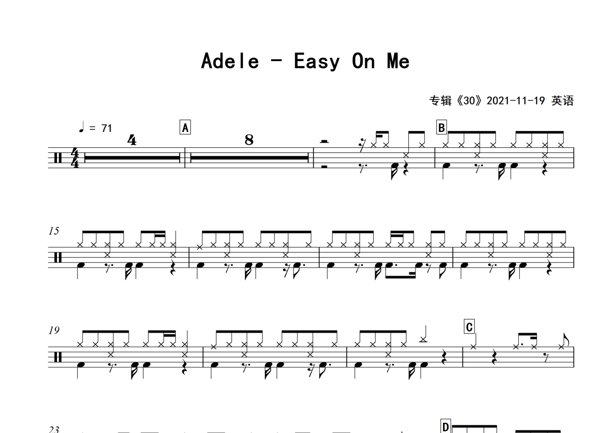 • Easy On Me鼓谱 - Adele - 架子鼓谱 - 编配版第1张
