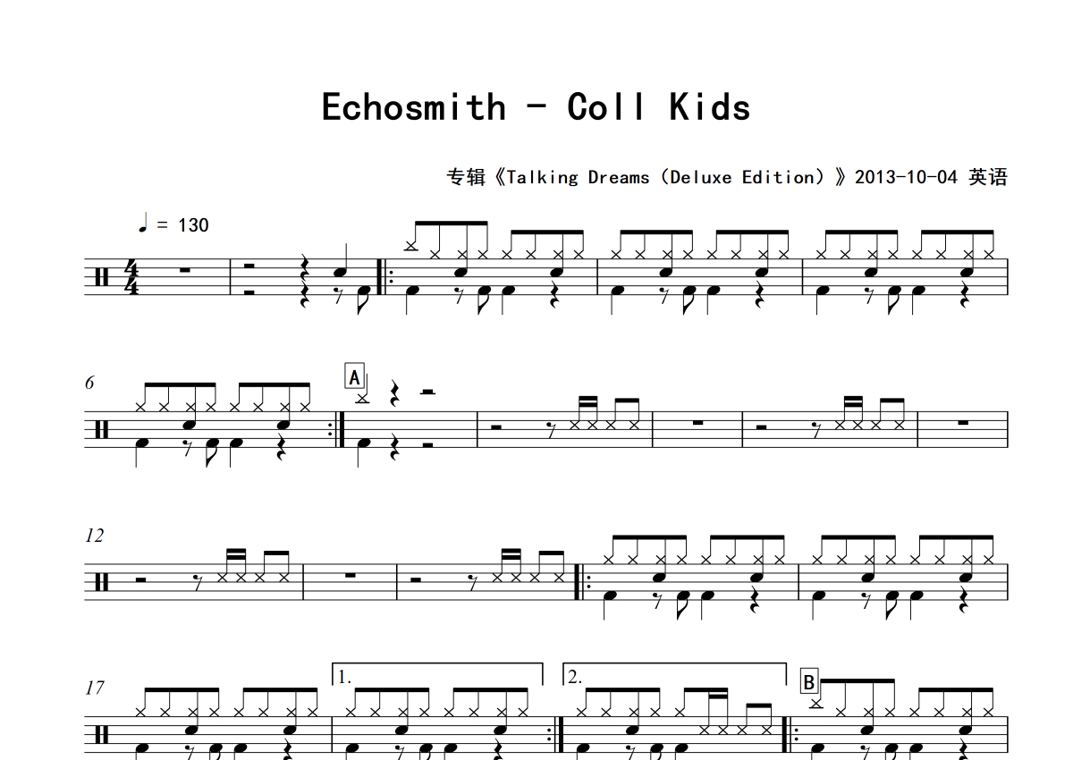 • Cool Kids鼓谱 - Echosmith - 架子鼓谱 - 专辑版第1张