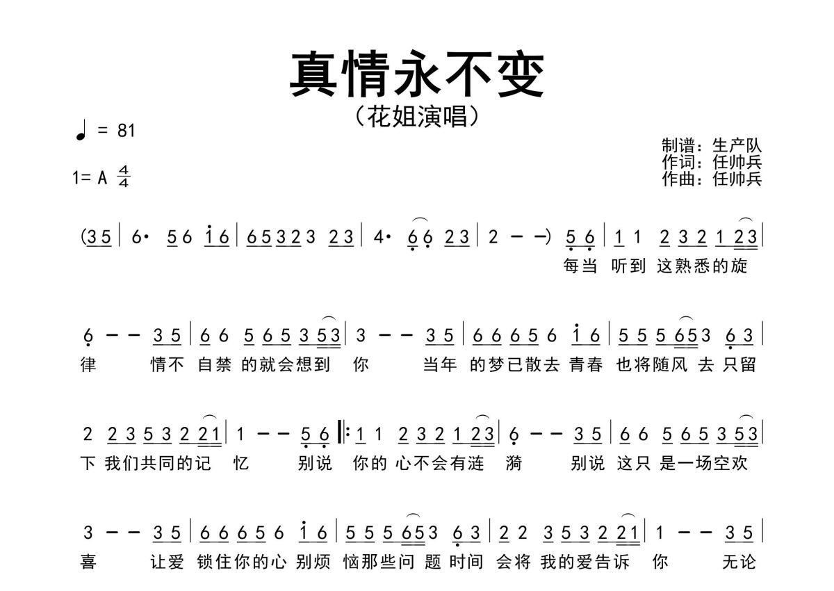 • 真情永不变简谱 - 花姐 - 原版简谱第1张