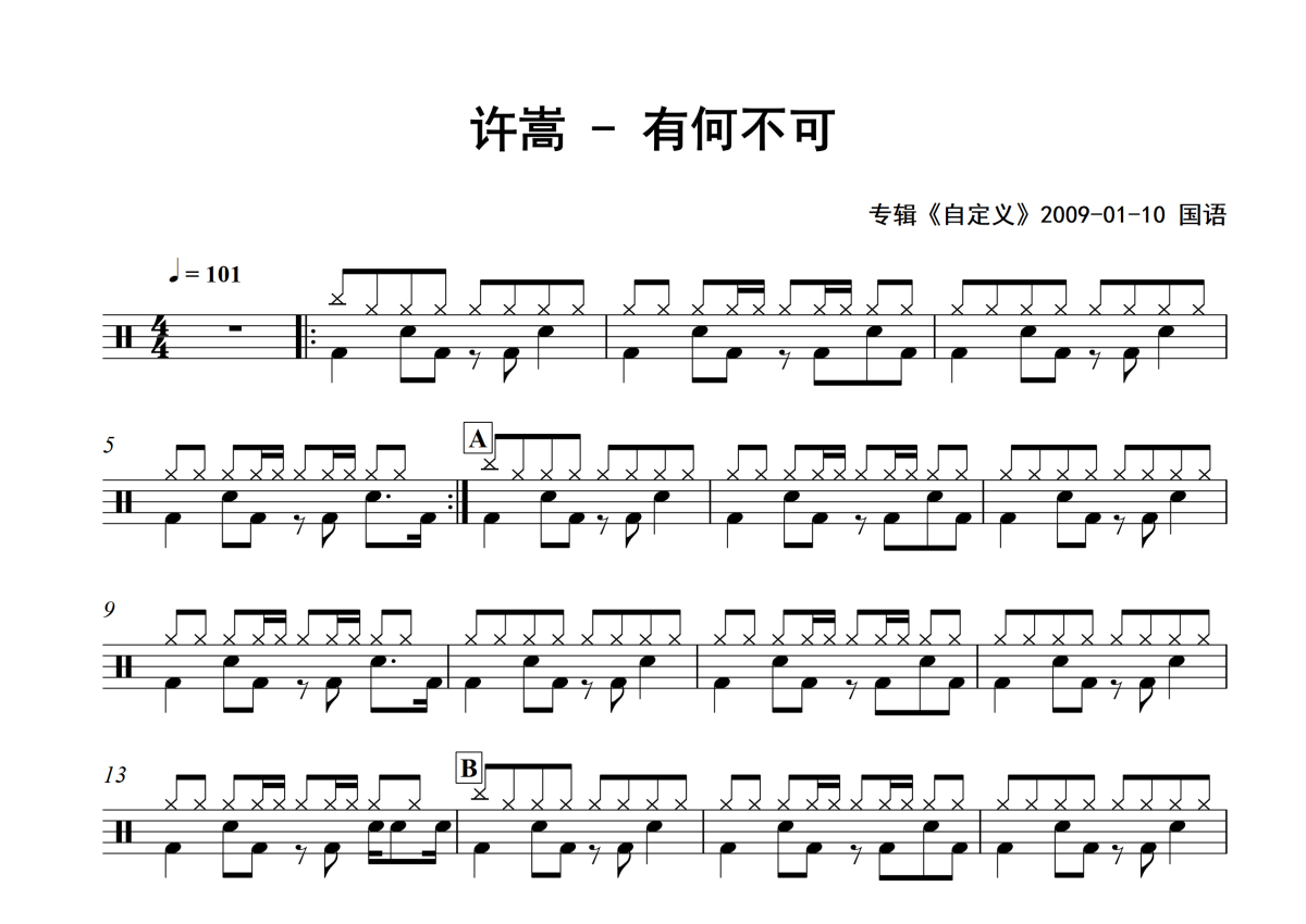 • 有何不可鼓谱 - 许嵩 - 架子鼓谱 - 专辑版第1张
