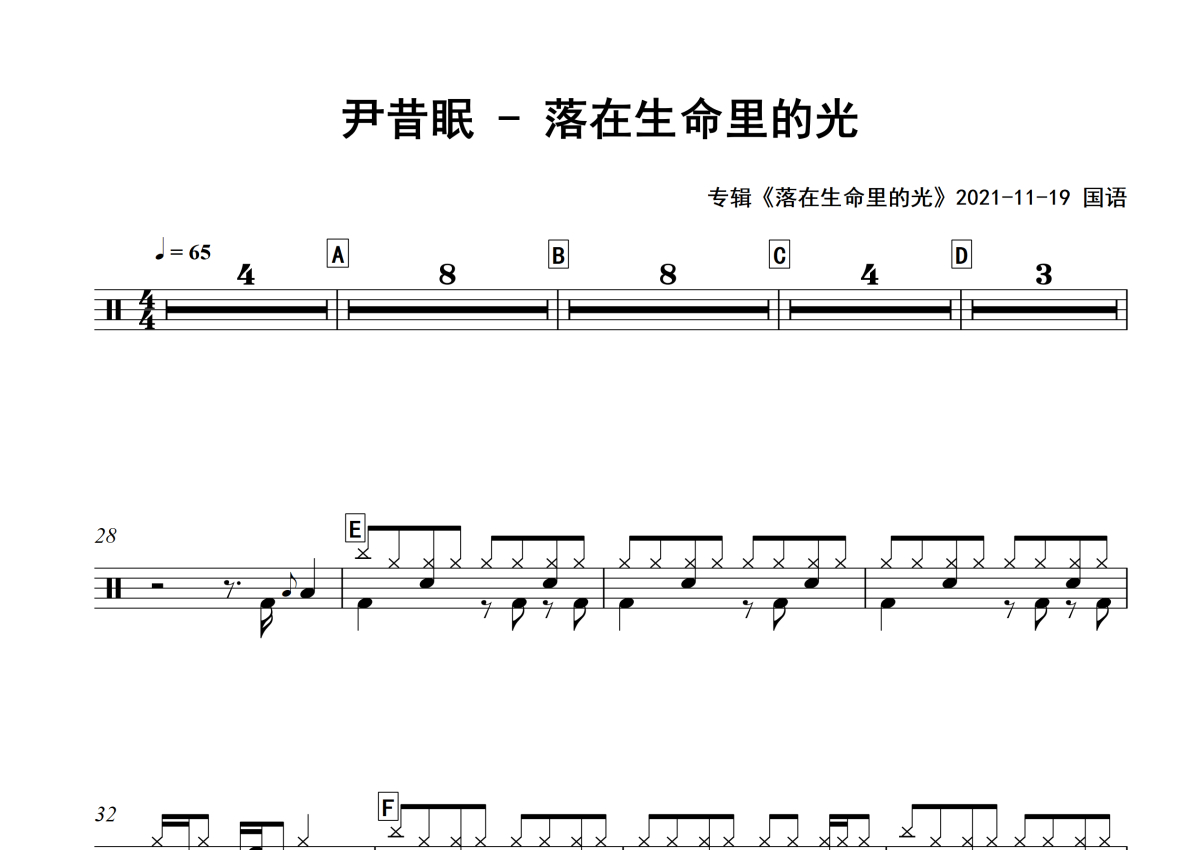 • 落在生命里的光鼓谱 - 尹昔眠 - 架子鼓谱 - 专辑版第1张
