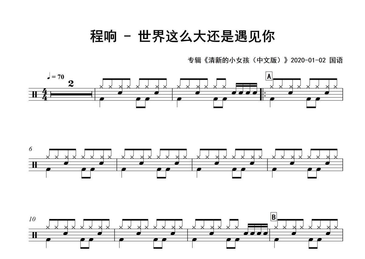 世界这么大还是遇见你鼓谱 - 程响 - 架子鼓谱 - 专辑版