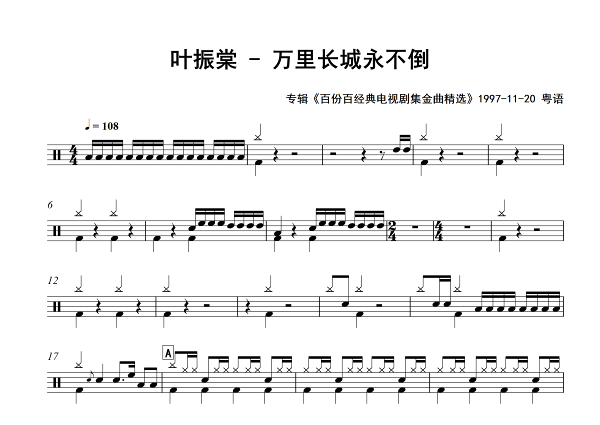 • 万里长城永不倒鼓谱 - 叶振棠 - 架子鼓谱 - 专辑版第1张