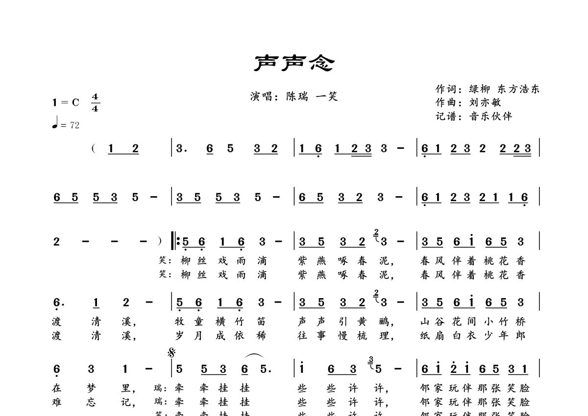 声声念简谱 - 陈瑞&一笑