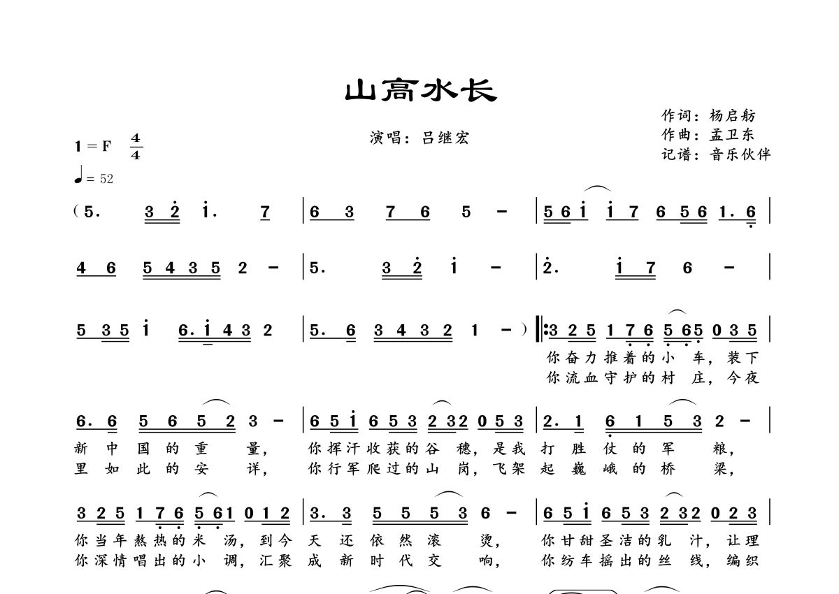• 山高水长简谱 - 吕继宏第1张