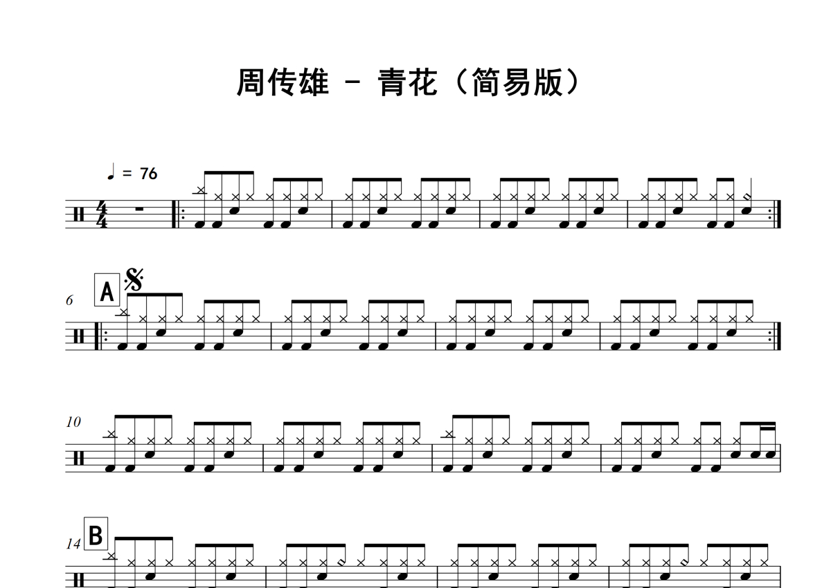 • 青花鼓谱 - 周传雄 - 架子鼓谱 - 简易版第1张