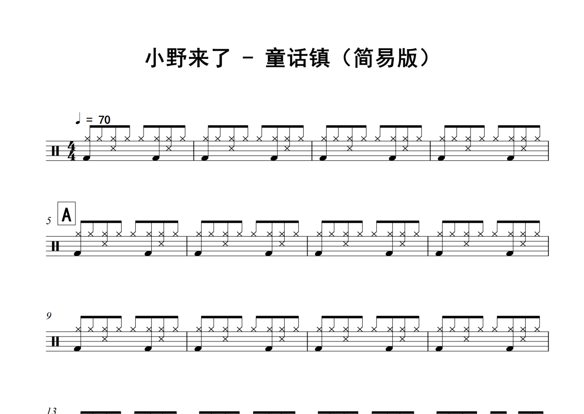 • 童话镇鼓谱 - 小野来了 - 架子鼓谱 - 简易版第1张
