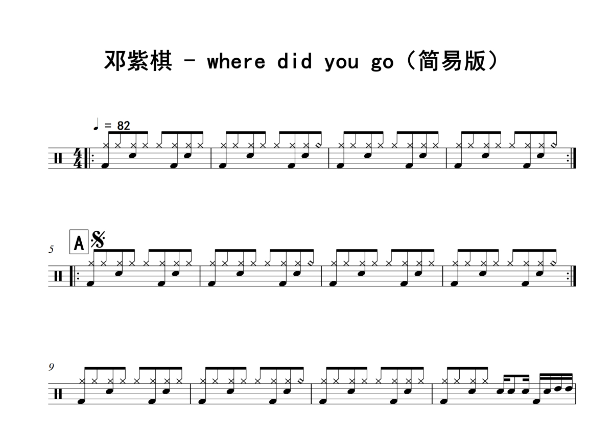 • where did you go鼓谱 - 邓紫棋 - 架子鼓谱 - 简易版第1张