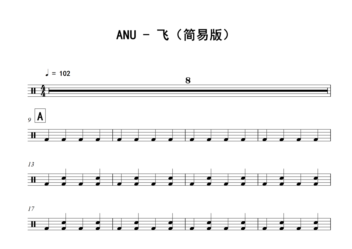 飞鼓谱 - ANU - 架子鼓谱 - 简易版