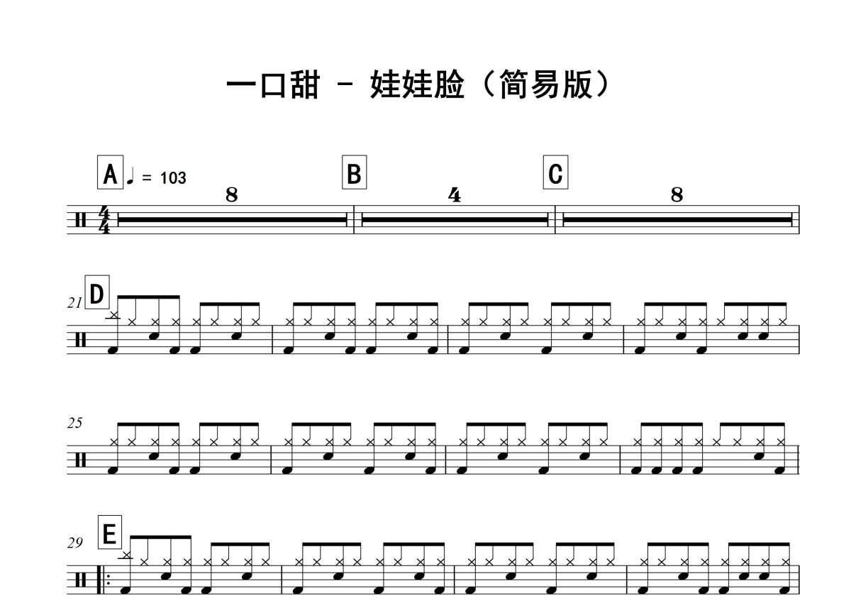 娃娃脸鼓谱 - 一口甜 - 架子鼓谱 - 简易版