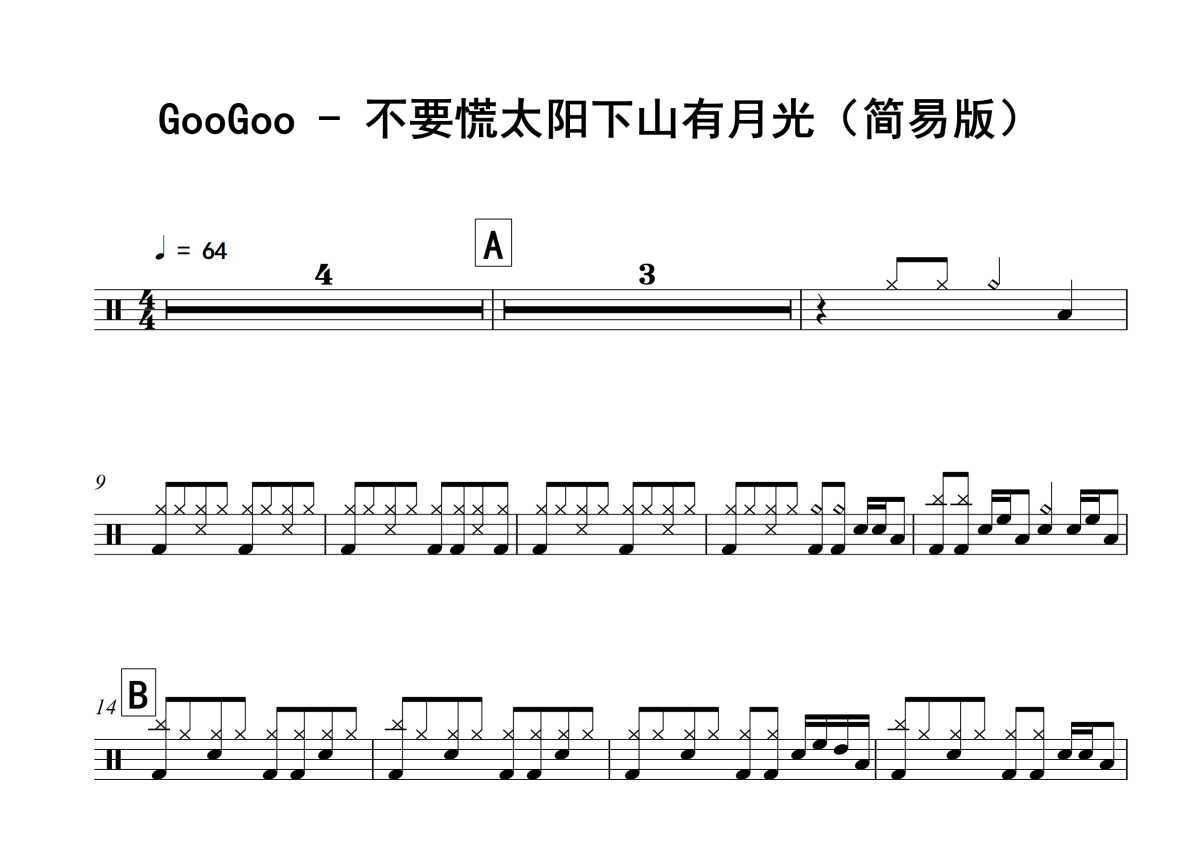 • 不要慌太阳下山有月光鼓谱 - GooGoo - 架子鼓谱 - 简易版第1张