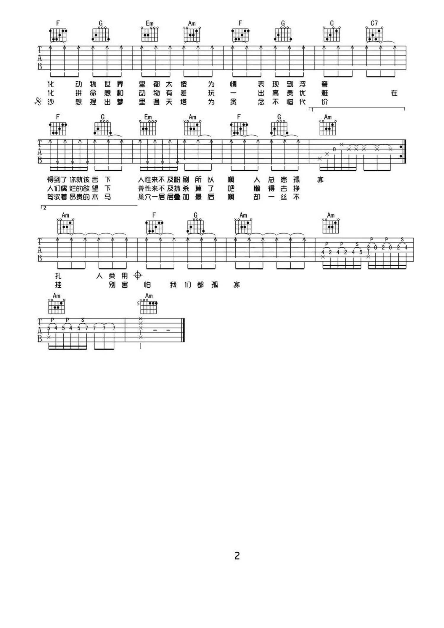 动物世界吉他谱 - 薛之谦 - C调吉他弹唱谱
