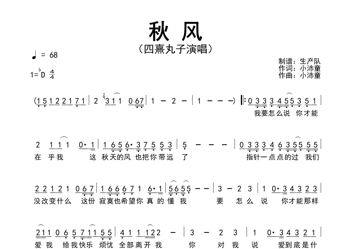• 秋风简谱 - 四熹丸子 - 原版简谱第1张