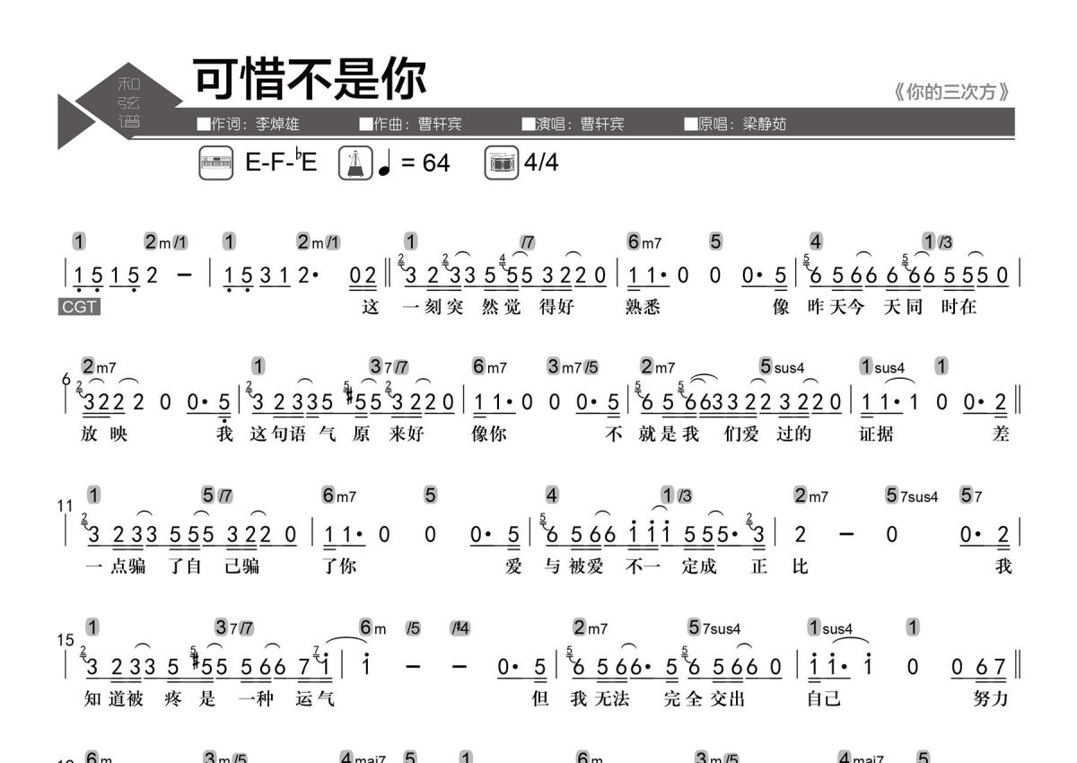 • 可惜不是你简谱 - 曹轩宾 - 数字级数和弦谱第1张