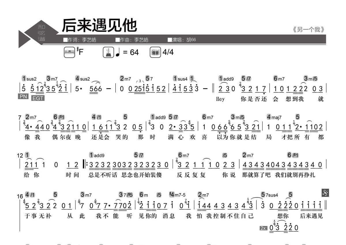 • 后来遇见他简谱 - 胡66 - 数字级数和弦谱第1张