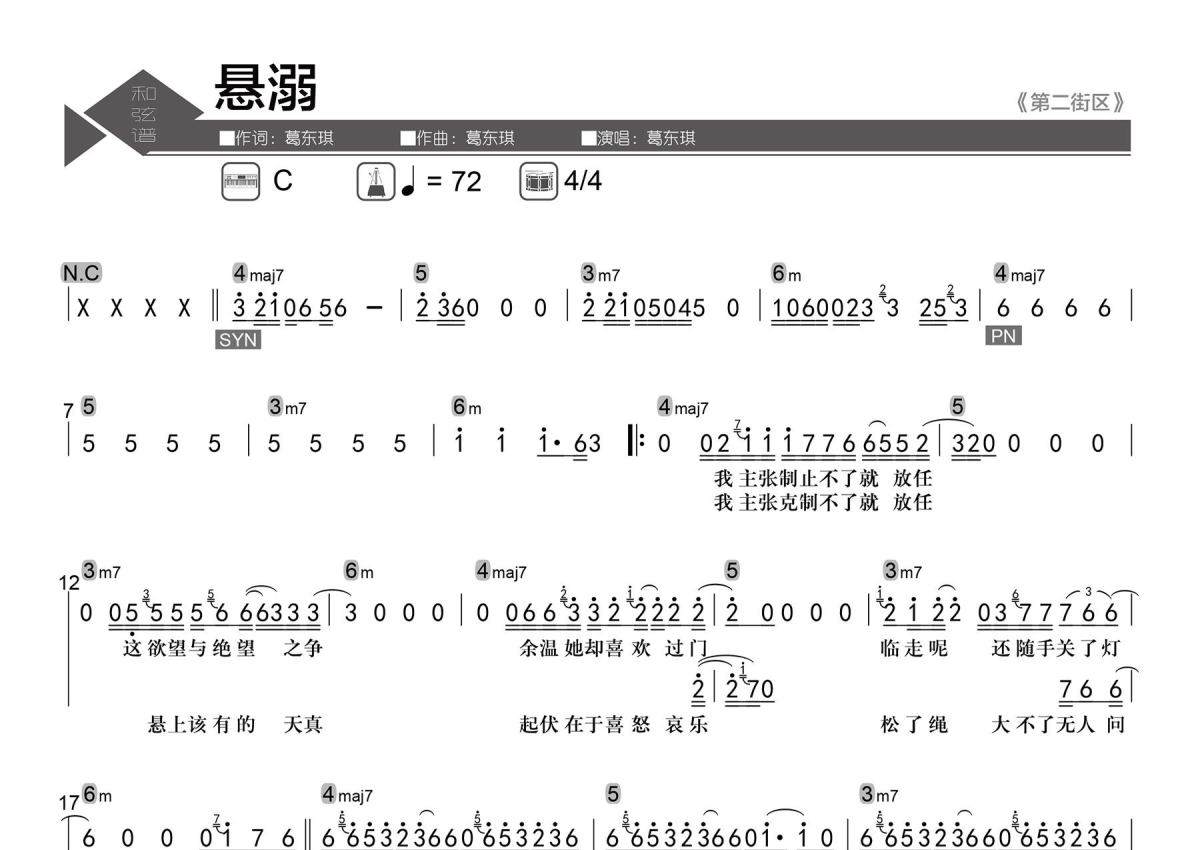 • 悬溺简谱 - 葛东琪第1张