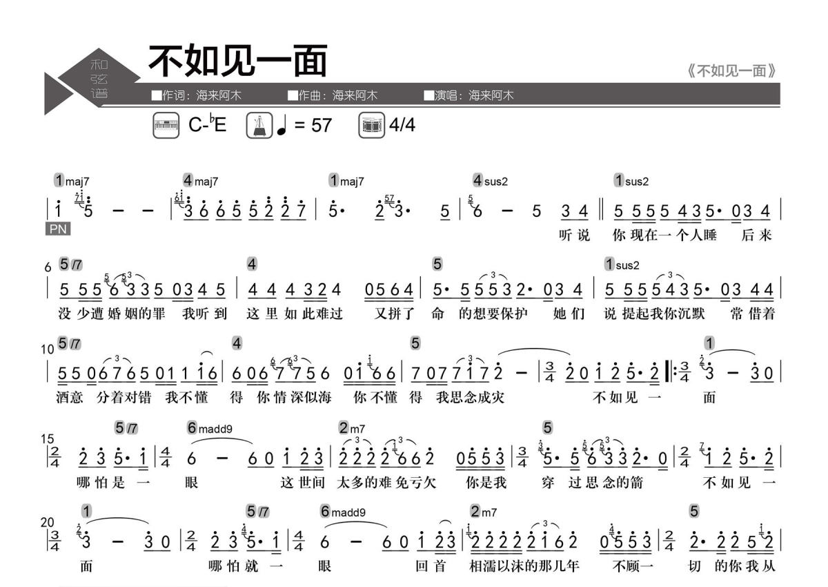 • 不如见一面简谱 - 海来阿木 - 数字级数和弦谱第1张