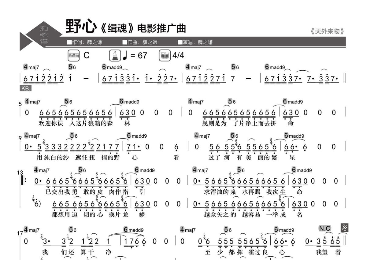 • 野心简谱 - 薛之谦 - 数字级数和弦谱第1张