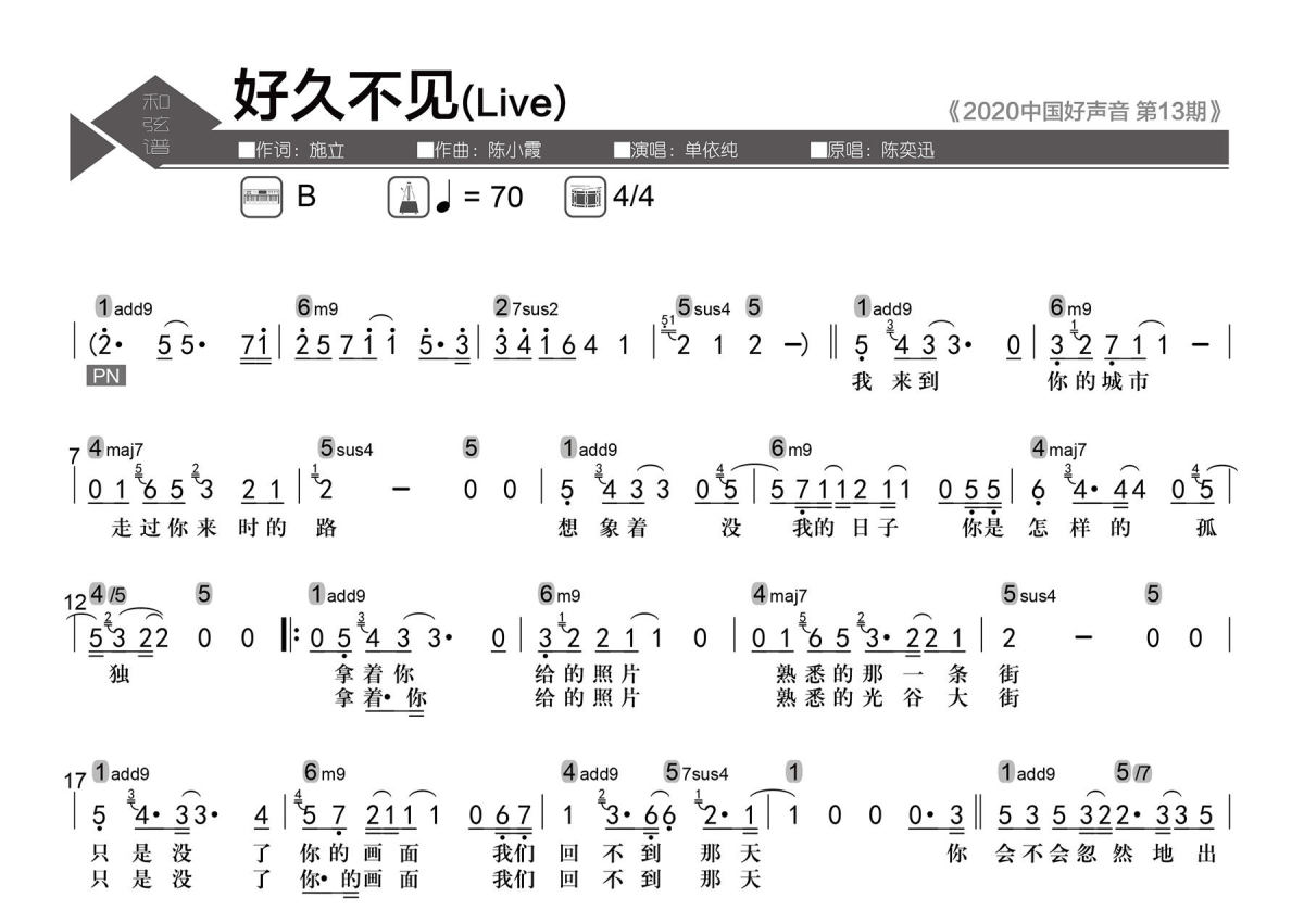 • 好久不见简谱 - 陈奕迅 - 数字级数和弦谱第1张