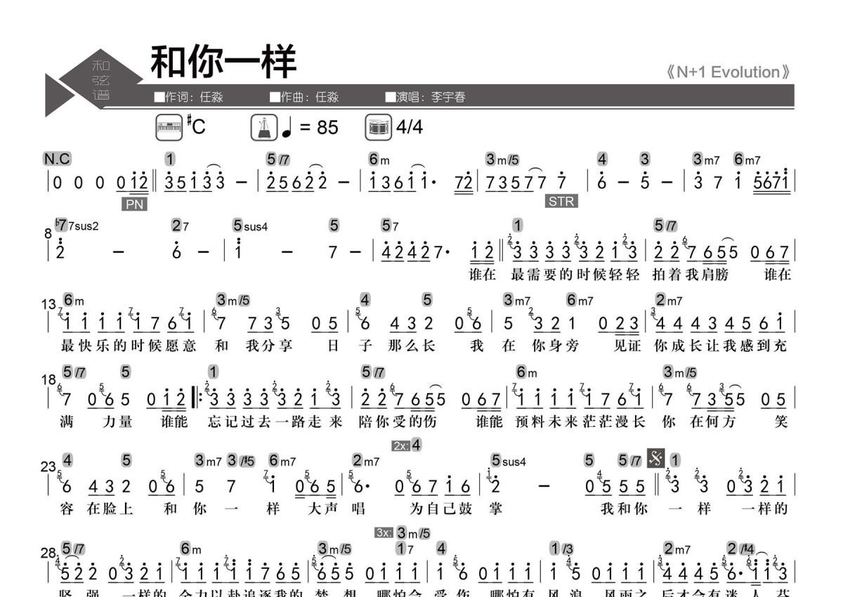 • 和你一样简谱 - 李宇春 - 数字级数和弦谱第1张