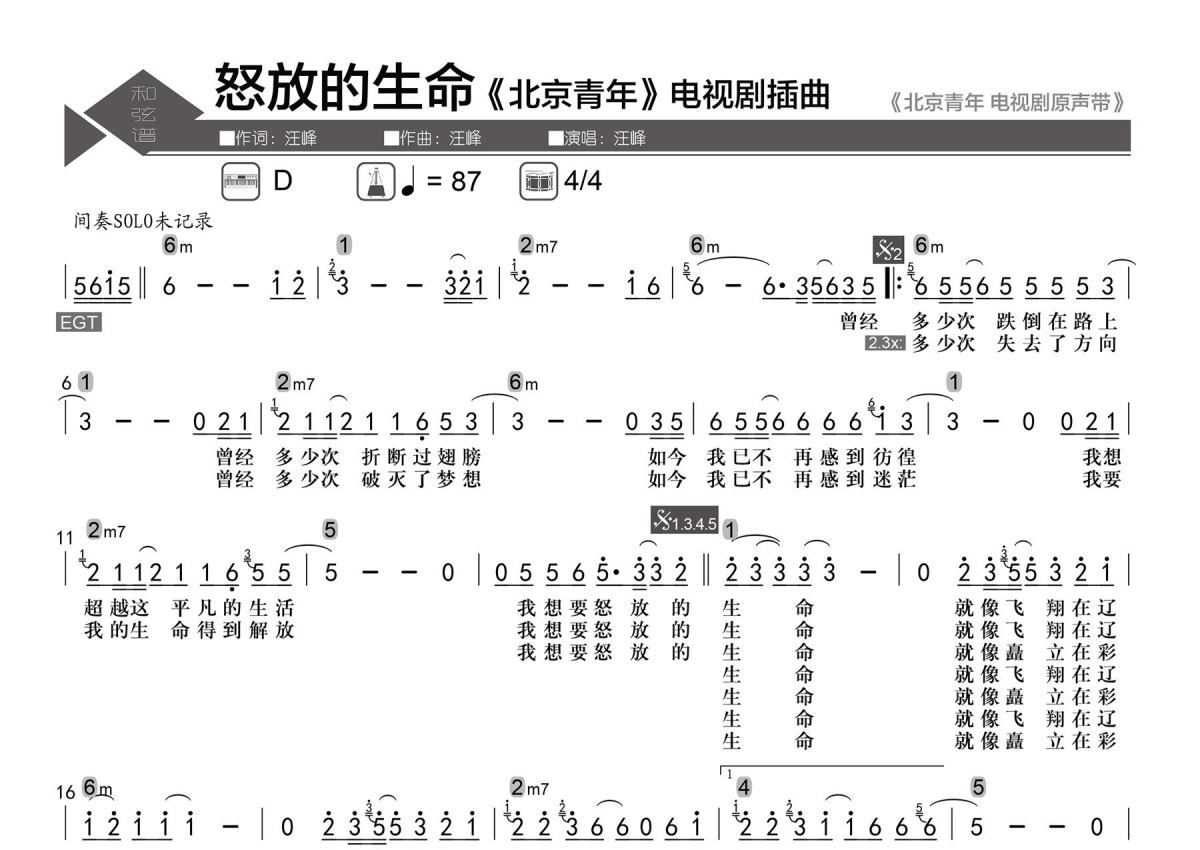 • 怒放的生命简谱 - 汪峰 - 数字级数和弦谱第1张