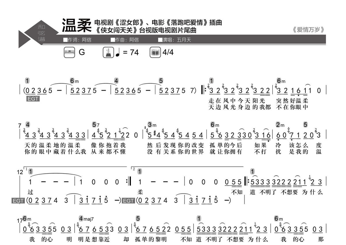 温柔简谱 - 五月天 - 数字级数和弦谱