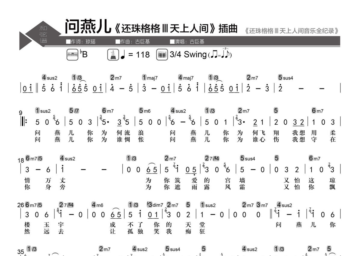 问燕儿简谱 - 古巨基 - 数字级数和弦谱