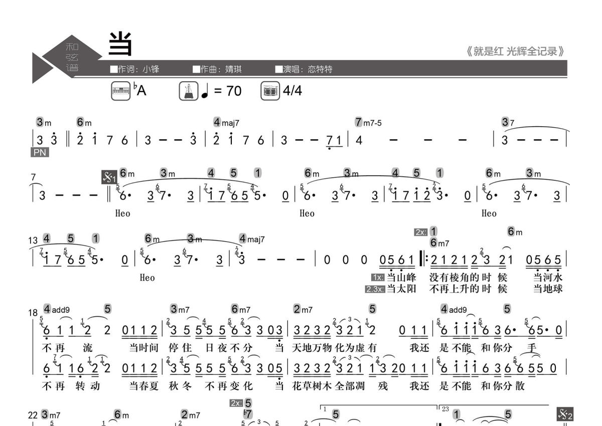曲谱介绍: 动力火车《当》数字级数和弦谱,老杨教吉他编配出品,共有1张高清图谱,免翻页排版设计。