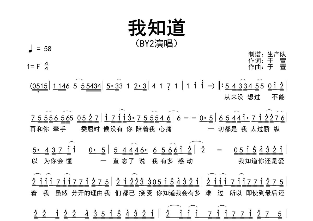 曲谱介绍: By2《我知道》原版简谱,生产队编配出品,共有1张高清图谱,免翻页排版设计。