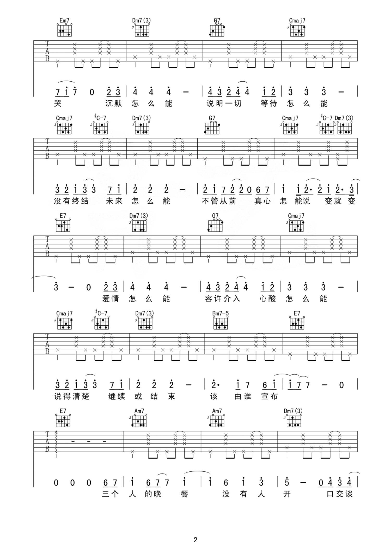 曲谱介绍: 三个人的晚餐吉他谱,王若琳演唱,C调指法,黄韵玲的原版才能唱出那种五味杂陈。