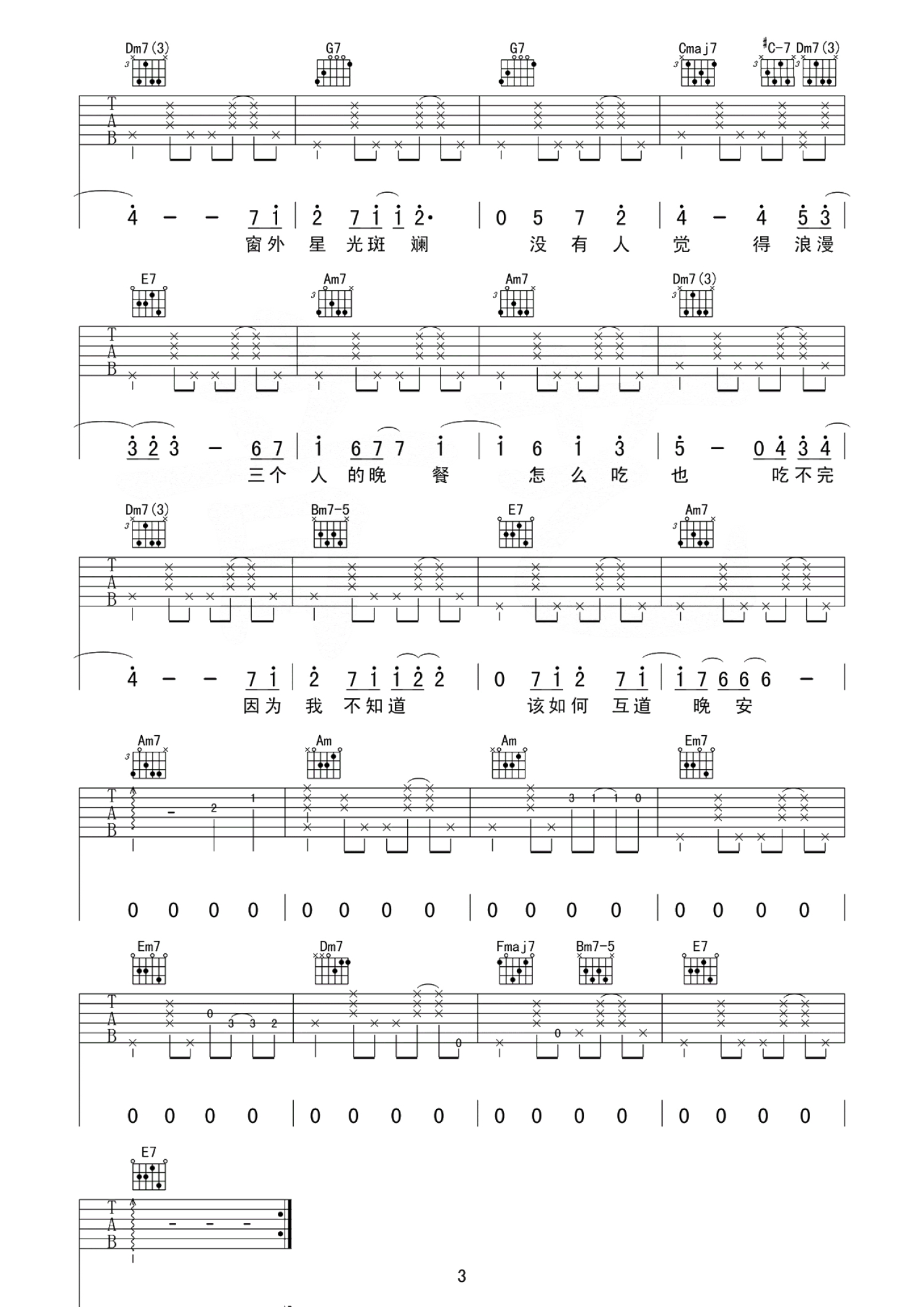 当前位置:琴谱网>吉他弹唱>三个人的晚餐