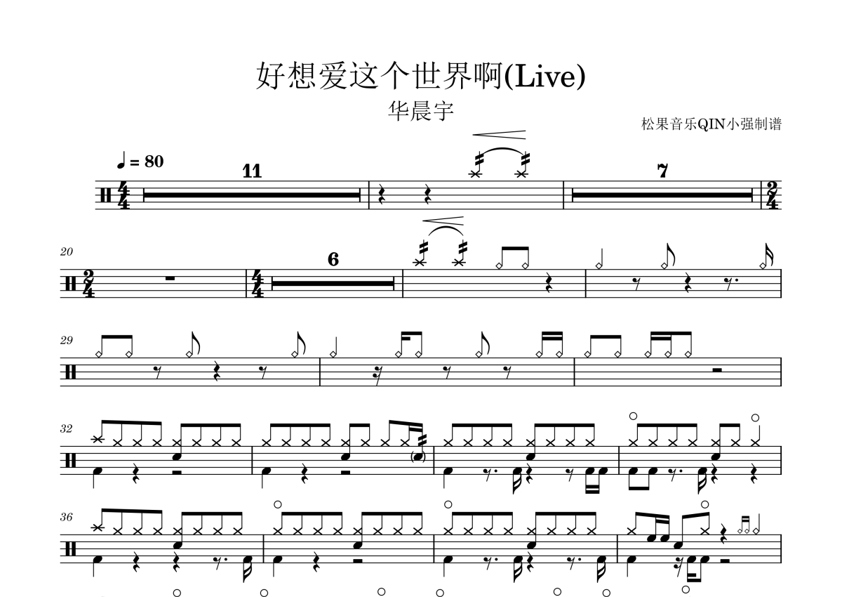 好想爱这个世界啊鼓谱 - 华晨宇 - 架子鼓谱