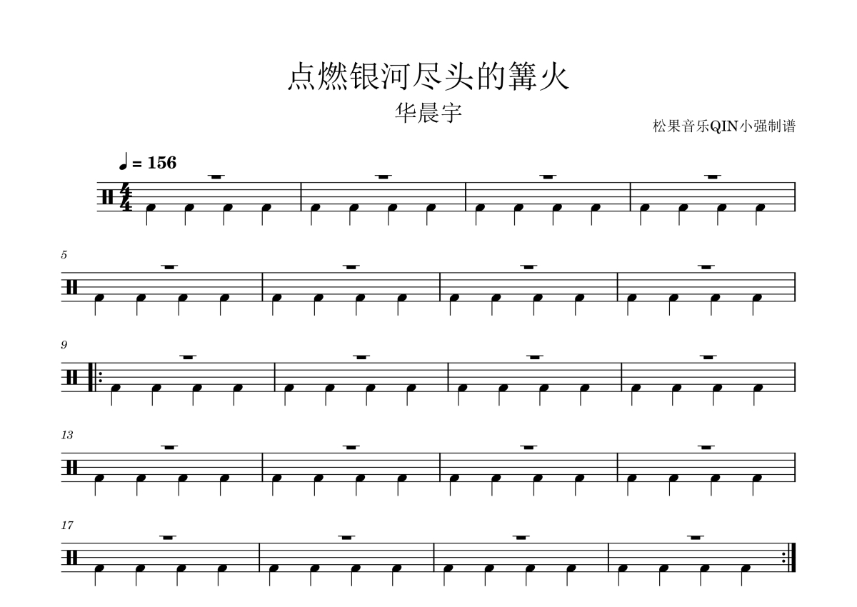 曲谱介绍: 华晨宇《点燃银河尽头的篝火》架子鼓谱,松果音乐QIN小强编配出品,共有4张高清图谱。