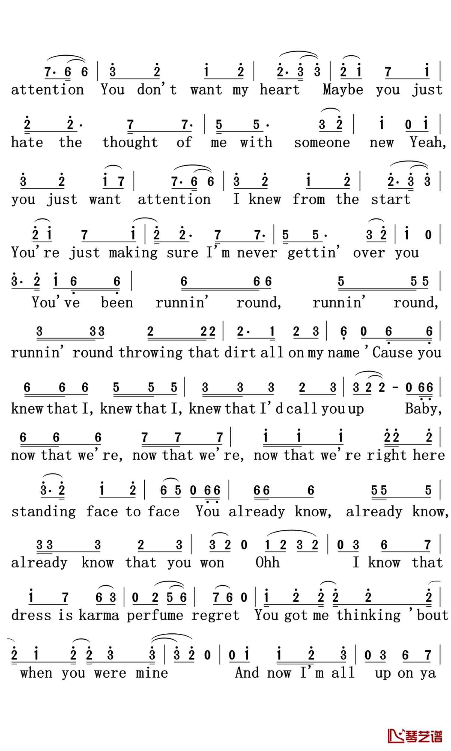 曲谱介绍: Charlie Puth《attention》歌词_简谱