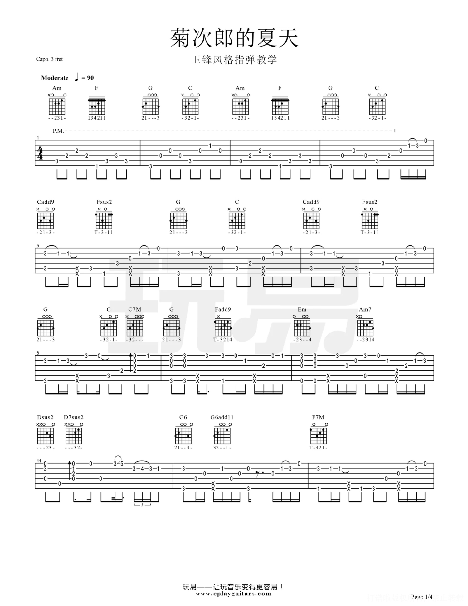 曲谱介绍: 菊次郎的夏天吉他谱,C调六线谱,高清版图片谱。菊次郎的夏天指弹谱,久石让为日本电影《菊次郎的夏天》创作的曲子《Summer》,清新明快的旋律,让人感受到温情和美好,仿佛回到童年,回到某一个夏日的午后时光。