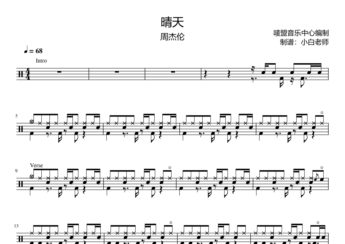• 晴天鼓谱 - 周杰伦 - 架子鼓谱第1张
