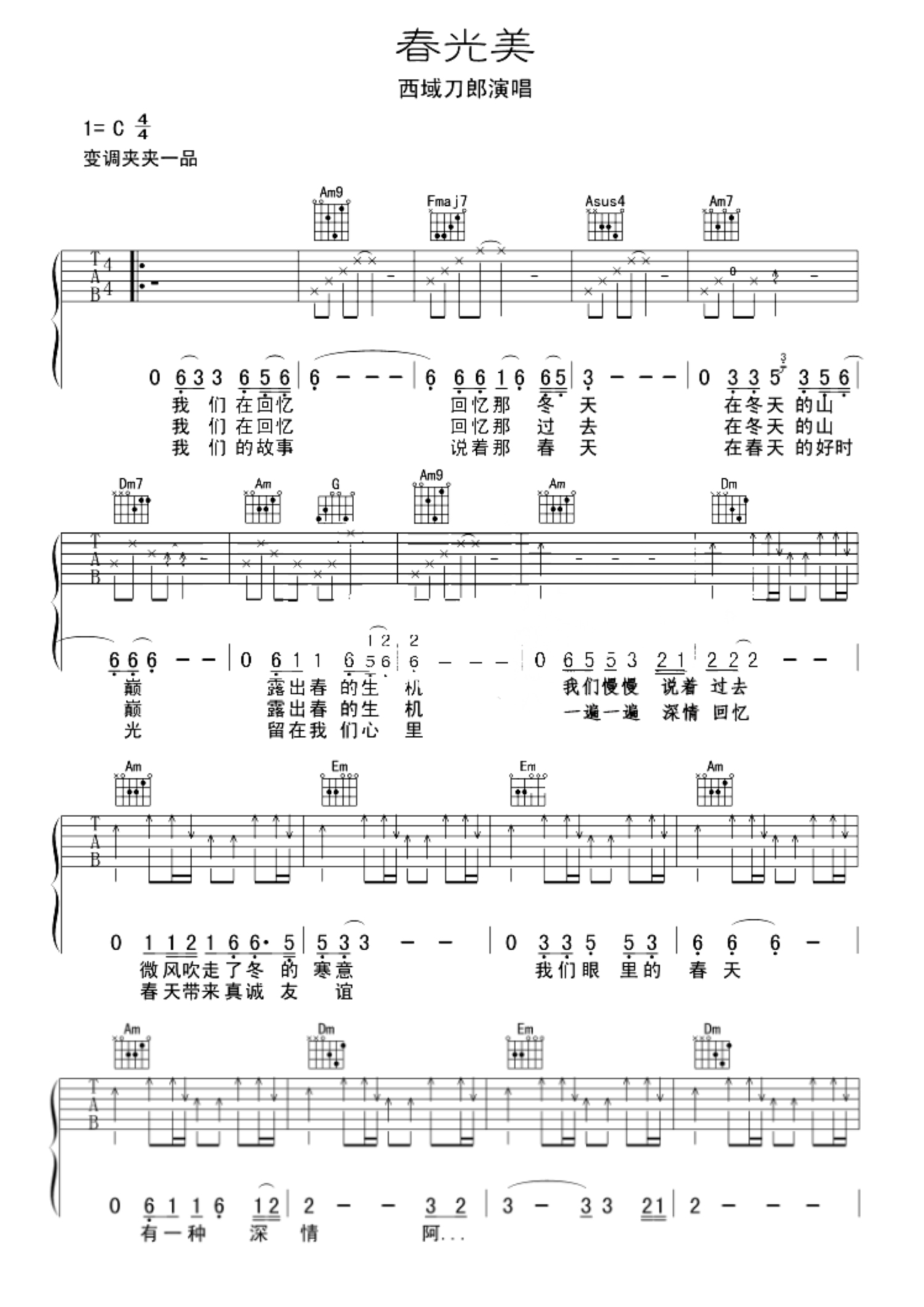 当前位置:琴谱网>吉他弹唱>春光美