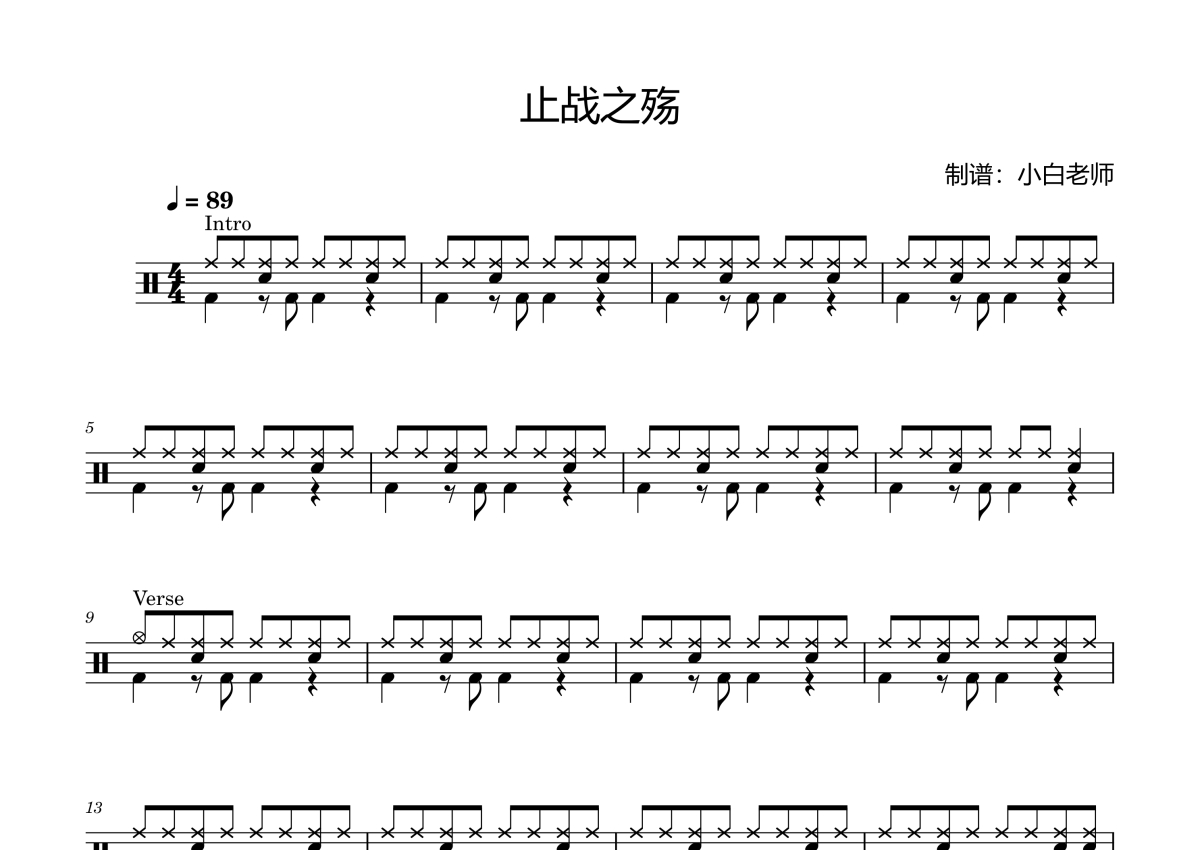 • 止战之殇(初级版)鼓谱 - 初级版 - 架子鼓谱第1张