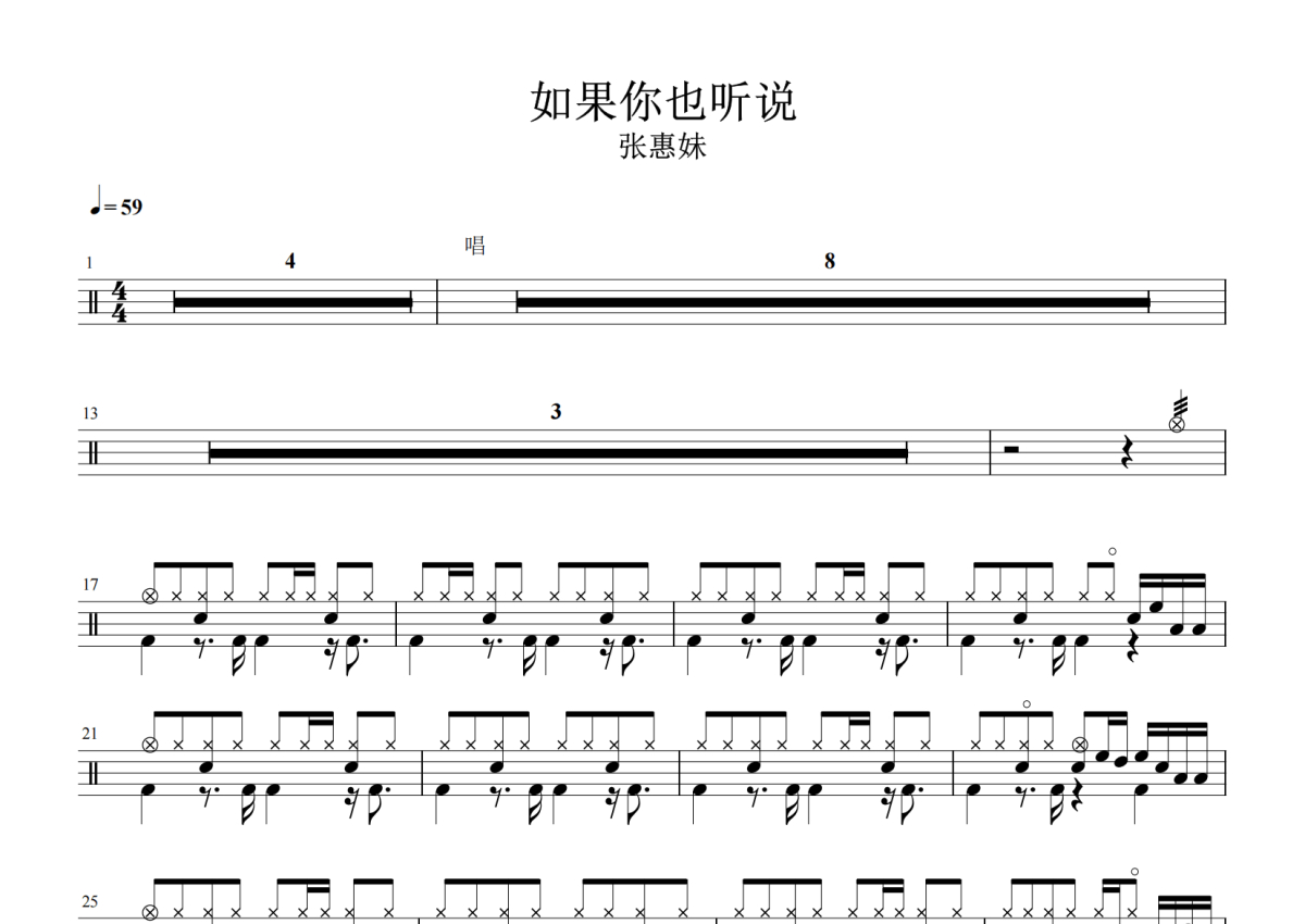 当前位置:琴谱网>架子鼓谱>如果你也听说