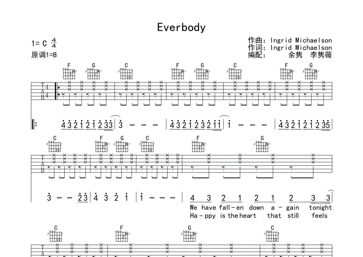 • Everybody吉他谱 - Ingrid Michaelson - C调吉他弹唱谱第1张