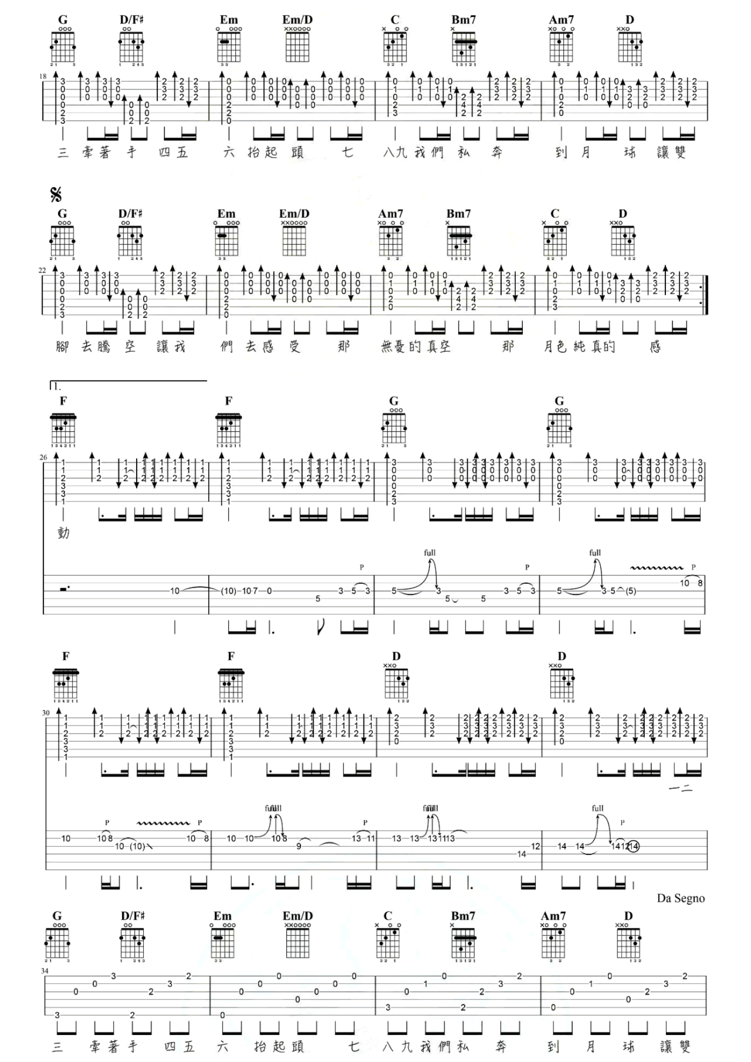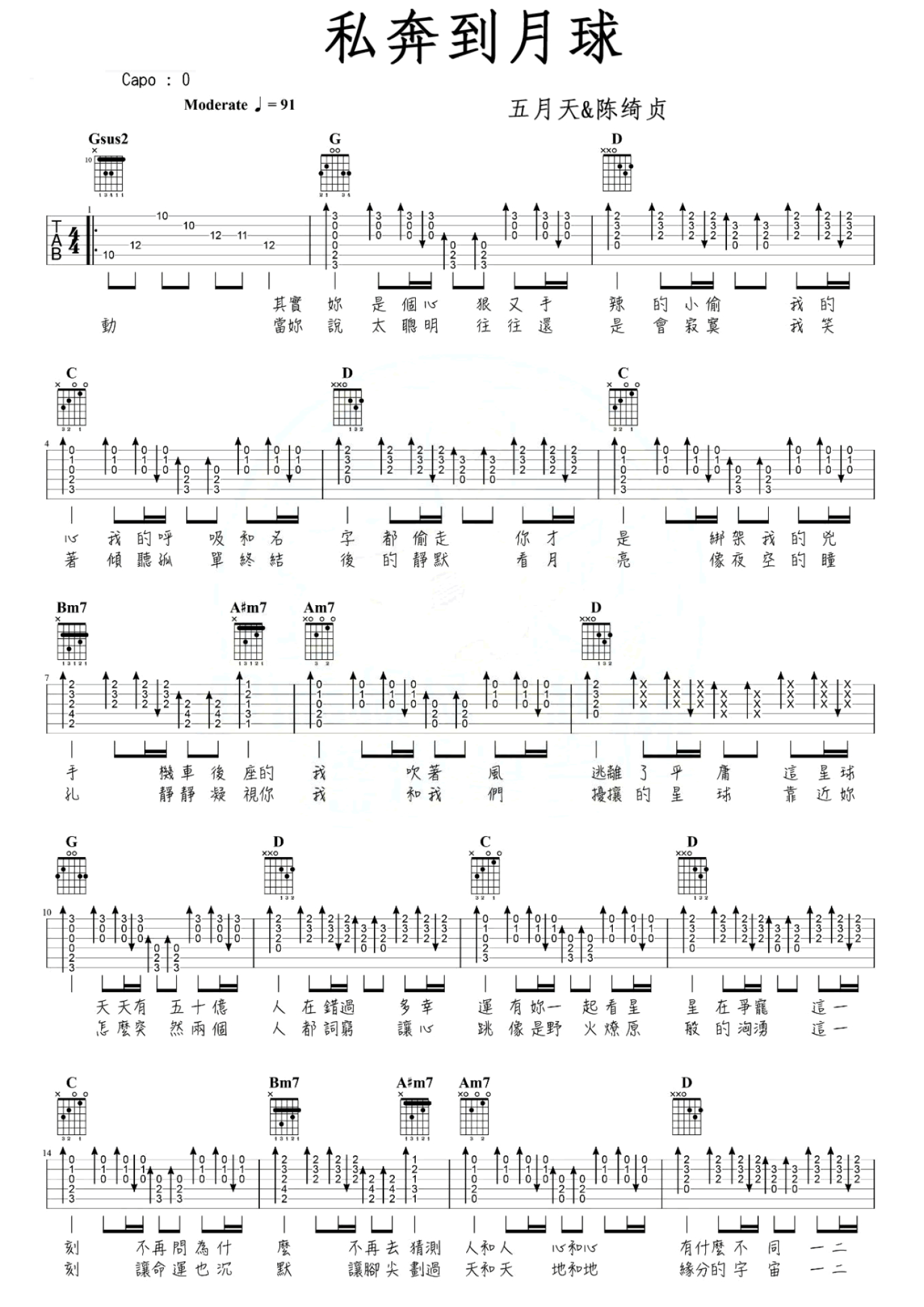 私奔到月球吉他谱 - 五月天&陈绮贞 - 吉他弹唱谱