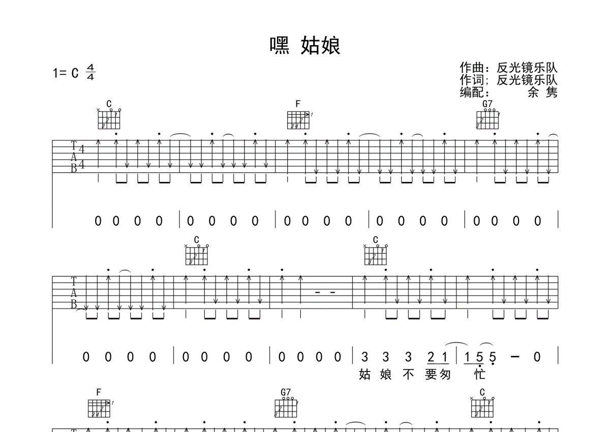 曲谱介绍: 反光镜乐队《嘿姑娘》吉他弹唱谱,采用C调指法编配,蘑菇编配出品,共有2张高清图谱,免翻页排版设计。