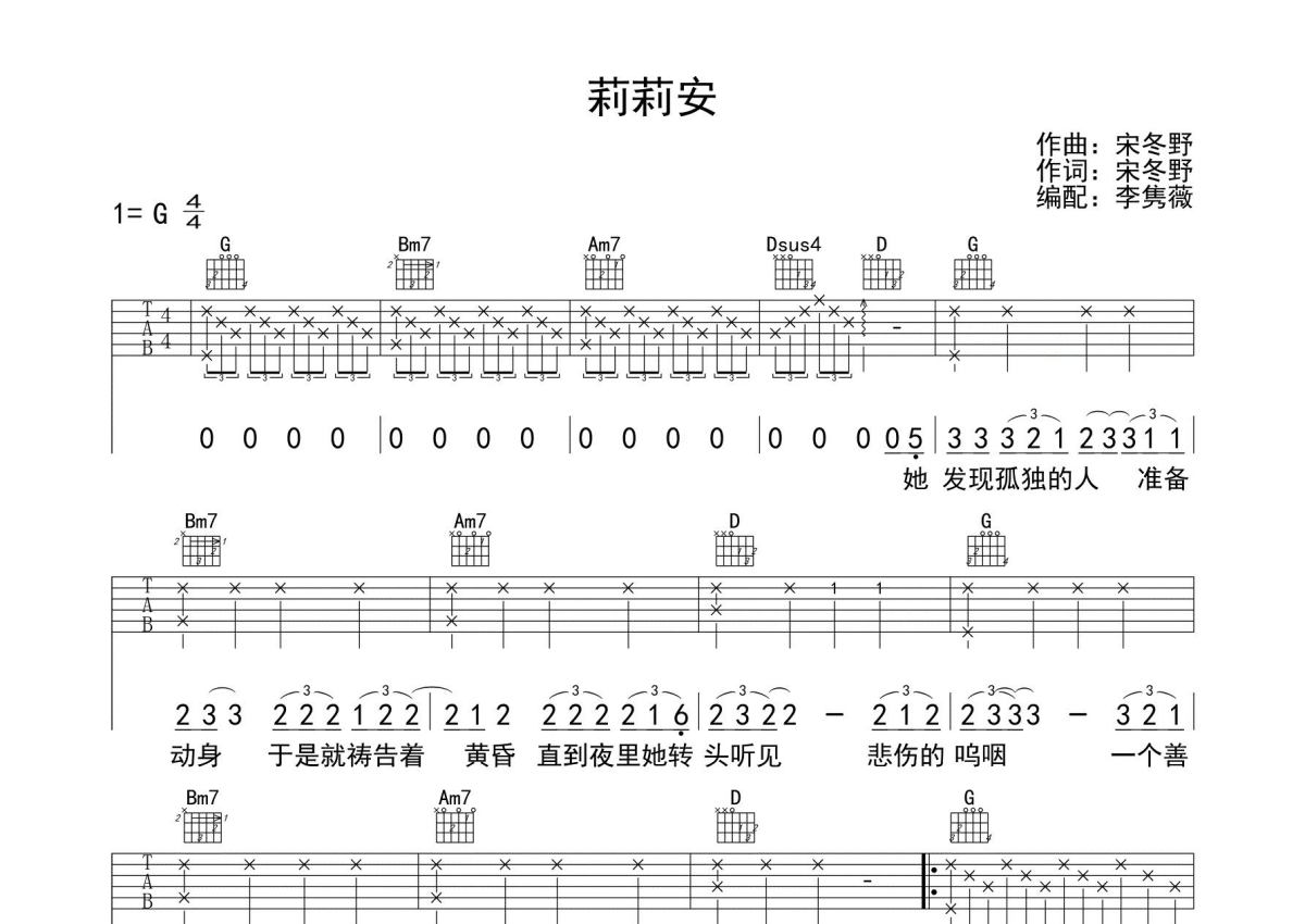 • 莉莉安吉他谱 - 宋冬野 - G调吉他弹唱谱第1张