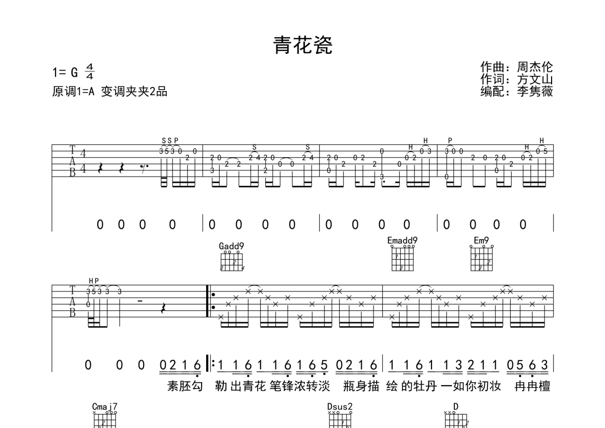 • 青花瓷吉他谱 - 周杰伦 - G调吉他弹唱谱第1张