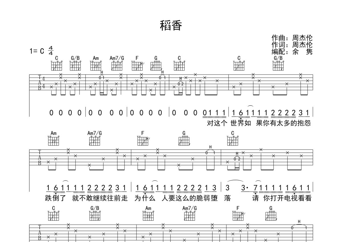 • 稻香吉他谱 - 周杰伦 - C调吉他弹唱谱第1张