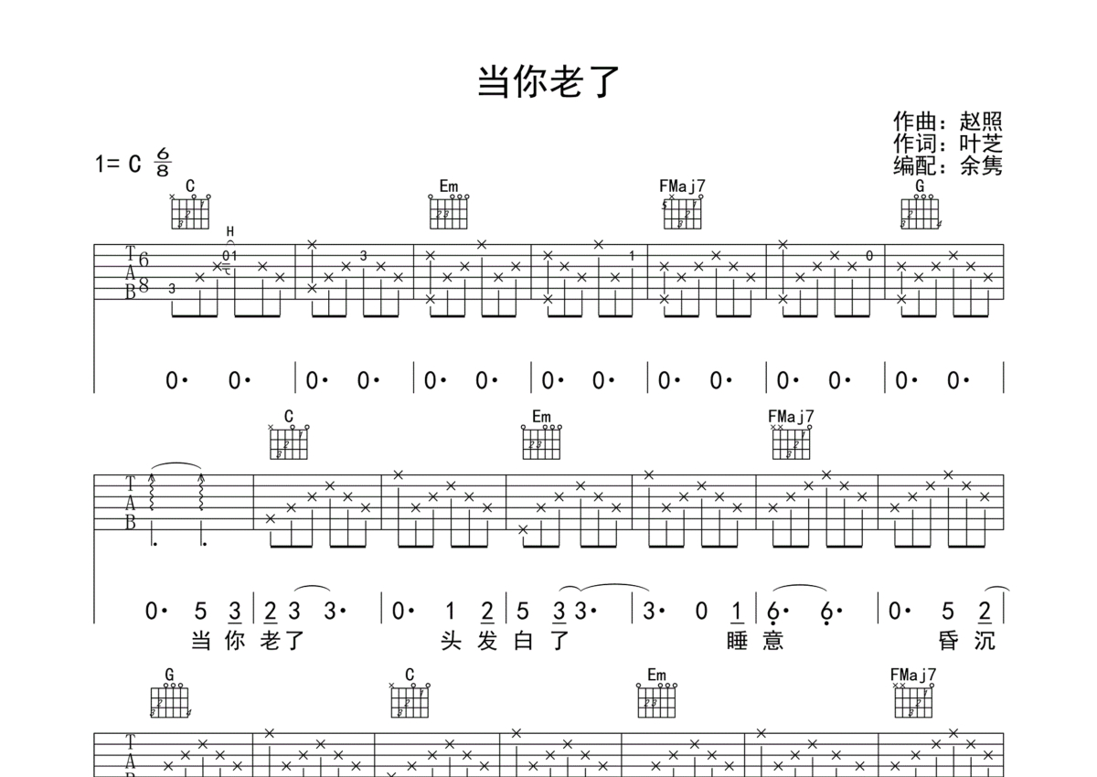 • 当你老了吉他谱 - 赵照 - C调吉他弹唱谱第1张