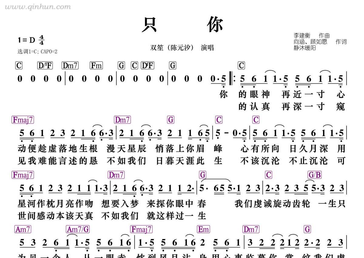 只你简谱 - 双笙(陈元汐) - 和弦谱