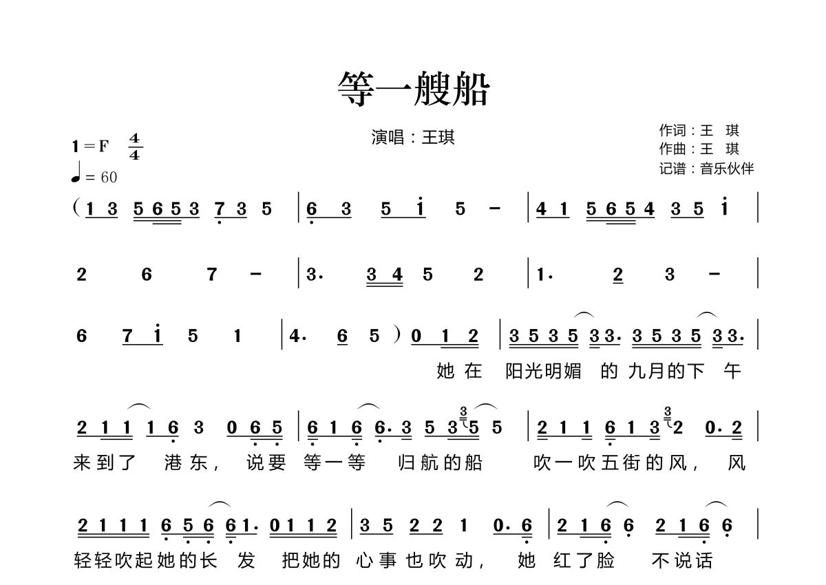 • 等一艘船简谱 - 王琪第1张
