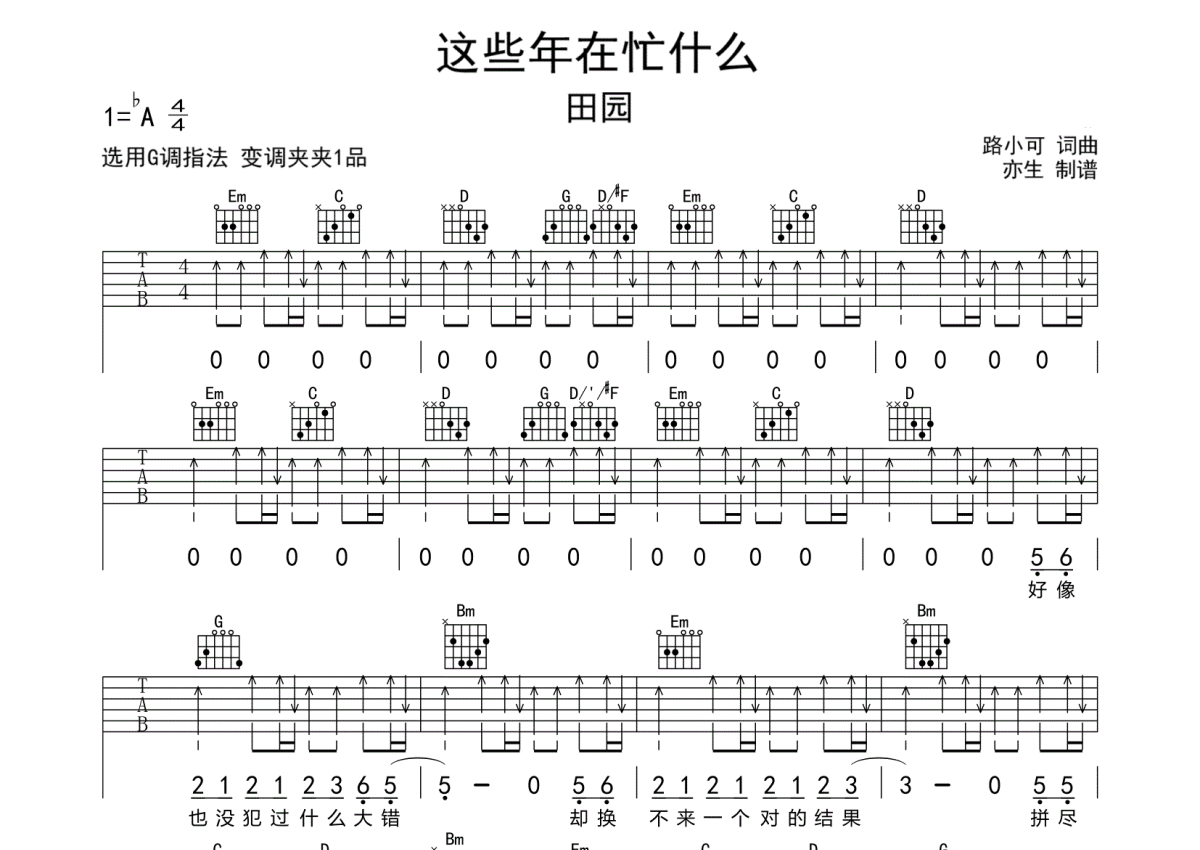 • 这些年在忙什么吉他谱 - 田园 - G调吉他弹唱谱第1张